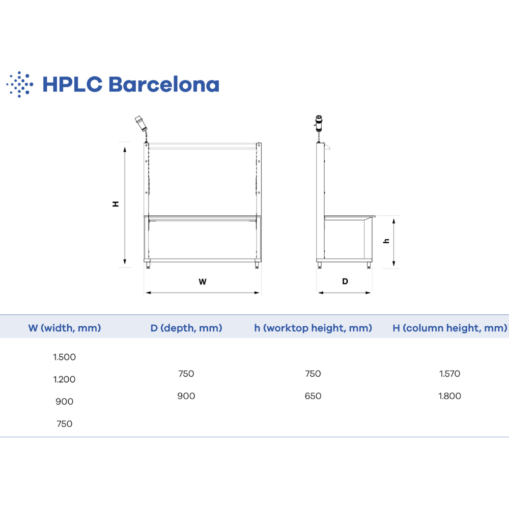 Masa de laborator HPLC Barcelona este proiectată pentru susținerea echipamentelor și utilajelor de tip HPLC sau a altor instrumente de dimensiuni similare, oferind o structură robustă, opțiuni flexibile de configurare și accesorii pentru optimizarea spațiului de lucru.