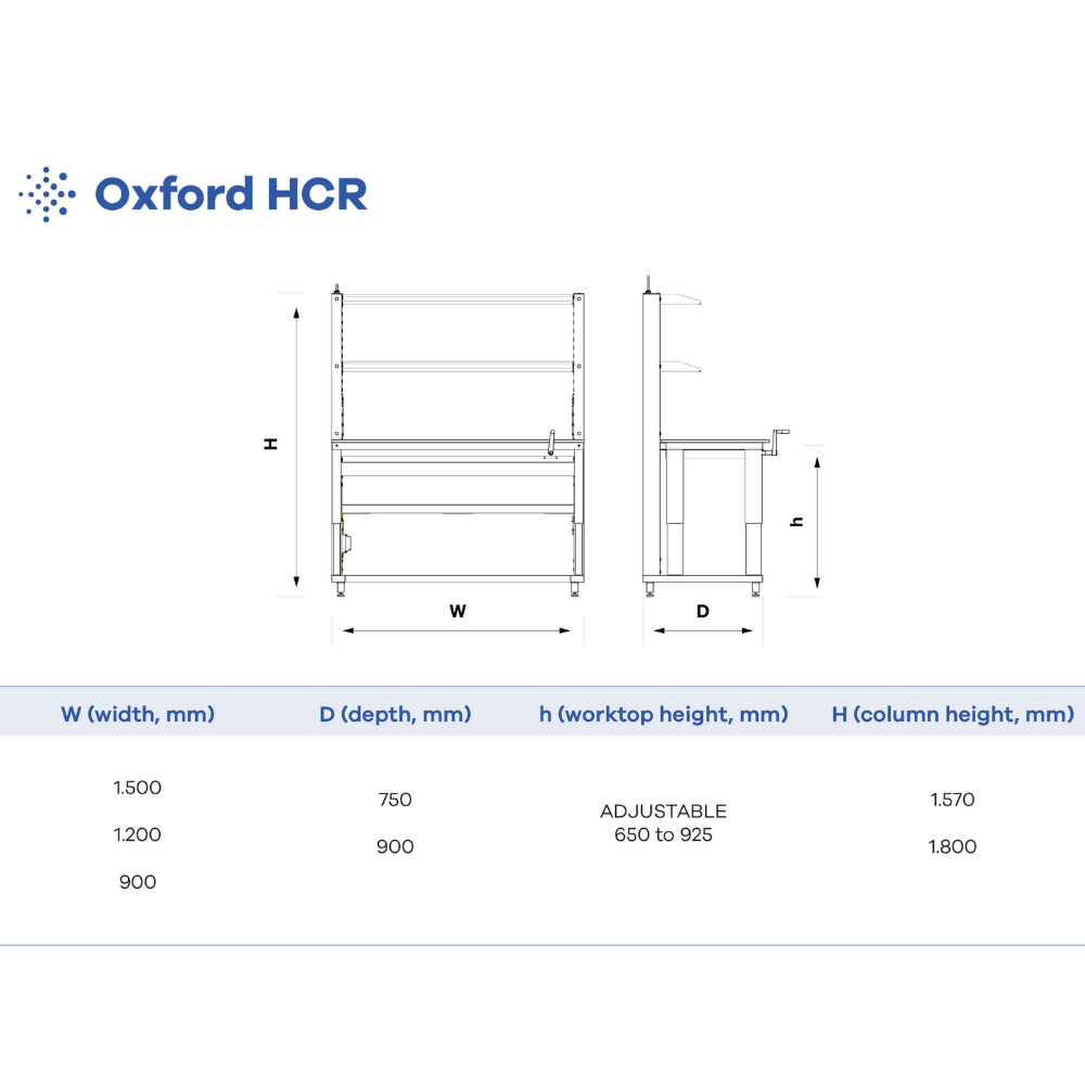 Masa de laborator Oxford HCR este concepută pentru funcționalitate maximă și ajustare ușoară. Structura robustă și designul ergonomic o fac potrivită pentru medii de lucru tehnic și laboratoare unde este necesară adaptarea înălțimii și integrarea utilităților.