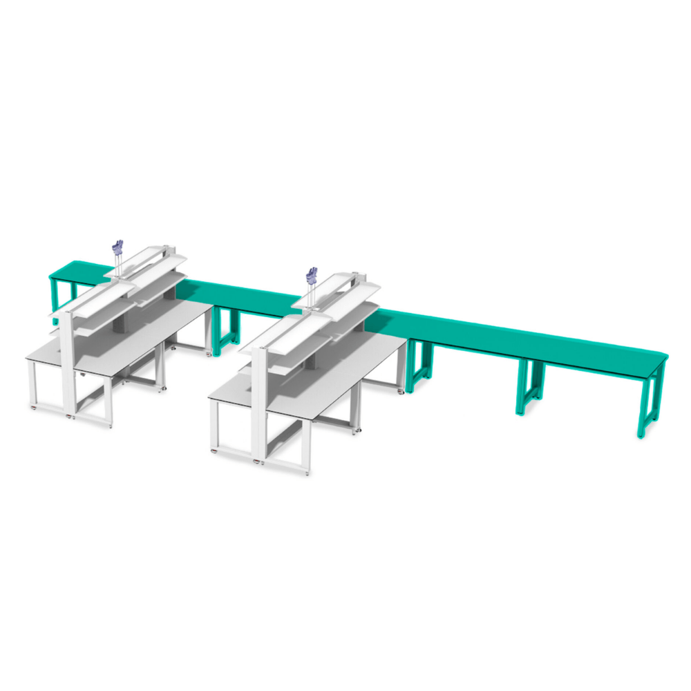 Masa de laborator Primary 4P este proiectată pentru utilizare cotidiană în laborator, oferind o soluție curată, adaptabilă și eficientă pentru spații care necesită suprafețe de lucru stabile, configurabile și ușor de personalizat.